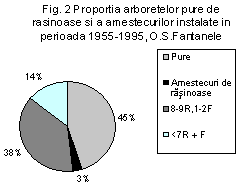 fig. 1 au fost reprezentate suprafețele cultivate cu rășinoase în perioada