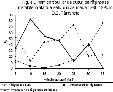 ceea ce privește culturile pure de rășinoase (fig. 3) se constată că 92% dintre